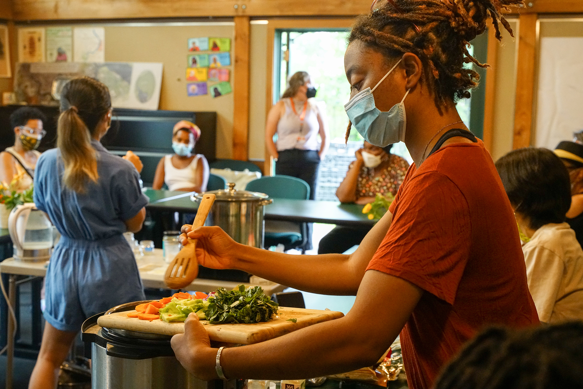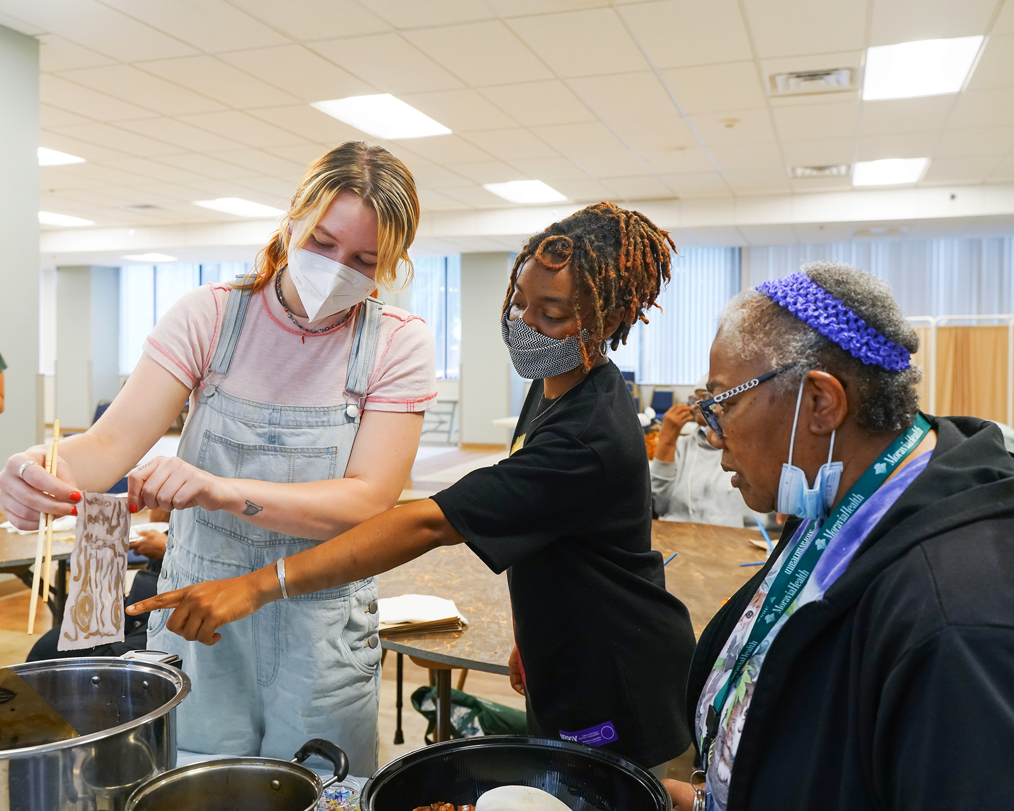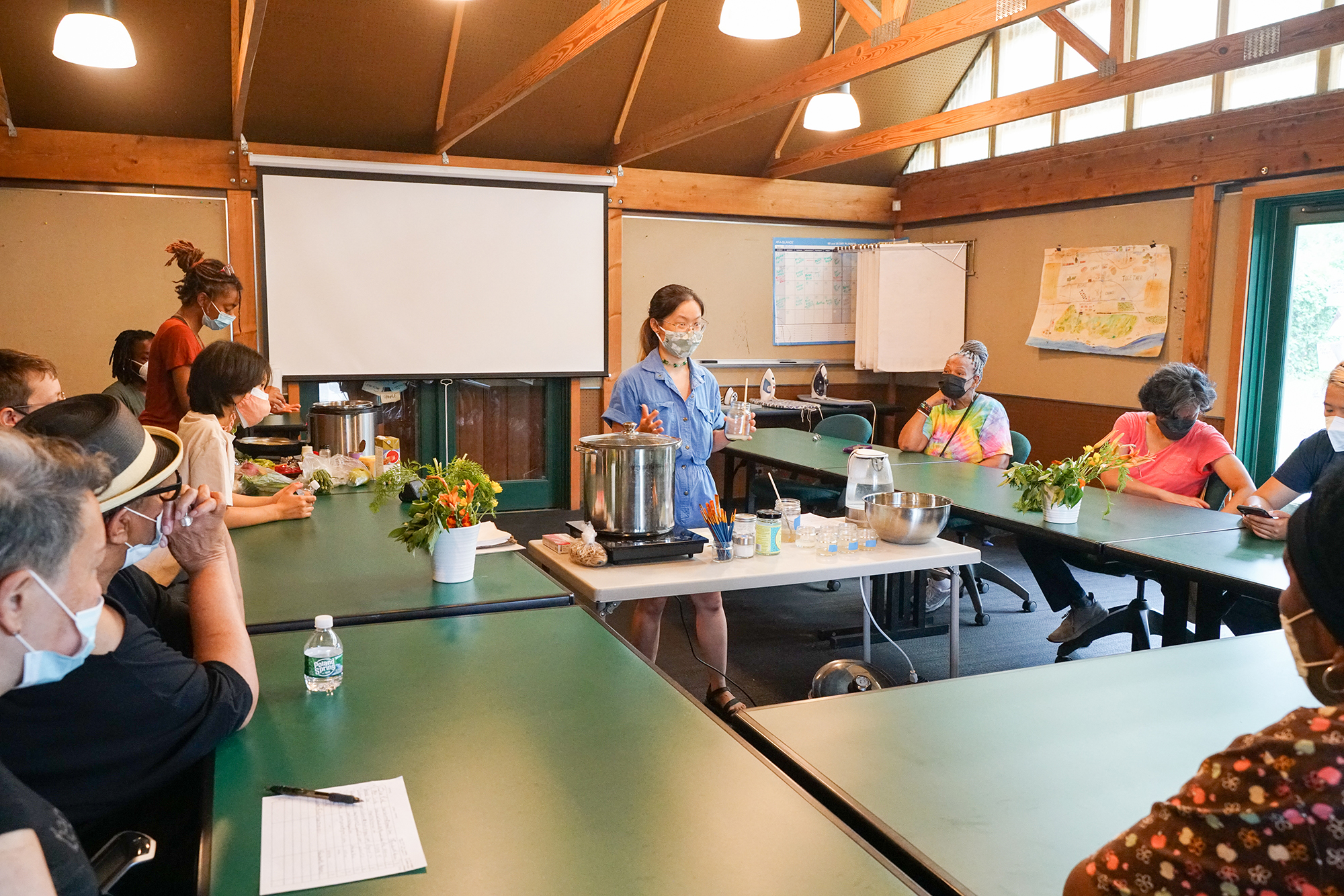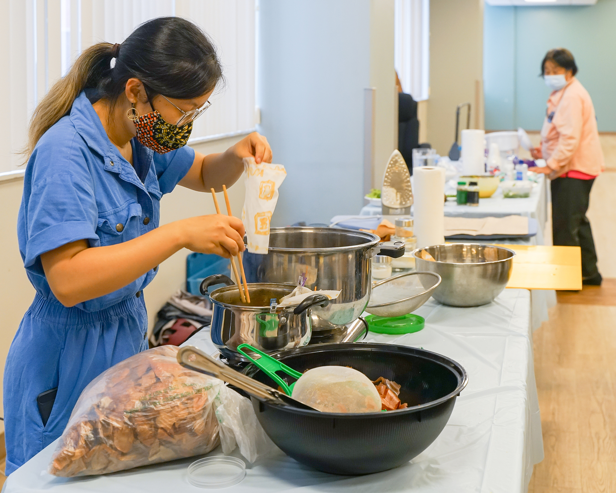 Cooking for Color is a natural dyeing and cooking workshop series using food waste and local produce with community elders from University Square Complex, with resulting swatches sewn into a community quilt currently displayed in their lobby. This project was funded by Barnes West and presented in partnership with Sankofa Community Farm at Bartram's Garden.